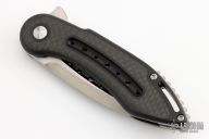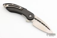 This Mini Glimpse by SteelCraft and Todd Begg features a satin finished spear point blade with fullers and a flipper. The handle has a black G-10 frame with carbon fiber inlays, titanium backspacer and tip up clip. Rides on IKBS bearings, nice detent, lockup and blade seating. Excellent condition. Comes with original box and papers.