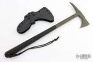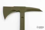 The Eagle Talon offers full tang construction made from 3/8" 80CRV2 carbon steel and has a Sniper Green Cerakote finish for increased corrosion and wear resistance. This is a very heavy use tool and the full tang construction absorbs impact while the hardened striking surface of the head delivers powerful impact force without chipping or shattering. The Black G-10 MEFP scales offer a contoured 3D texture that works effectively in both wet and dry environments without an overly aggressive feel. The 3” forward facing edge is razor sharp and is complimented by a 3" distal tapered spike that can be used for digging, shattering tempered glass, penetrating sheet metal, hacking through concrete and wood or breaking chains and hardened padlocks. It is also a highly functional piece of kit for first responders who require a tool for breach and extraction work.