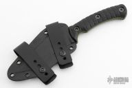 The blade has a Tungsten Cerakote finish for corrosion resistance and a low vis look.  The beveled and contoured G10 grips feature diagonal texturing for an aggressive but comfortable and secure grip. The Peregrine comes with a molded kydex scabbard including two MAD straps that allow for scout carry (horizontal) and inside the waistband (IWB) vertical carry. The sheath is MOLLE compatible and can also be attached to any pack, plate carrier or similar gear with PALS webbing.  The scabbard will work with most of the popular clips and mounts like the Discreet Carry Concepts Clip and UltiClip.