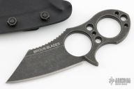 This Silent Soldier Ranger V2 by Brous Blades has a black wharncliffe blade with notched thumbrest. Has matching finish on the handle with 3-finger ergonomics. .190" blade stock, 1.435" depth. Comes with Kydex sheath. Excellent Condition.