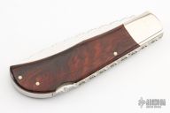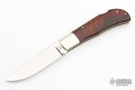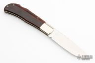 This Lockback by Ken Steigerwalt features a mirror polished blade with nail nick and fileworked spine. The handle has dovetailed nickel silver bolsters, cocobolo scales, nickel silver liners, fileworked stainless steel backspacer. Excellent condition. Very classy little piece. Comes with a zippered case.
