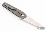 This Bushido Framelock Flipper by Will Collazo features a satin finished blade with a flipper. The handle has a bead blasted titanium frame with a zirconium tip up clip. Rides on bearings, nice detent, lockup and blade seating. Has a few light scratches/scuffs, otherwise excellent condition.