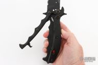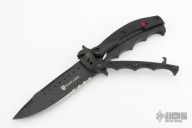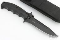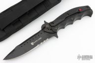 Not only just a superior tactical knife, the Trip Wire also features an integrated, built-in 3-position wire cutting system. You will not need to cut wires very often. But if you carry a knife to use in your occupation or in an emergency, and you carry this knife, you will always be prepared. Period. This is a top level tactical product and not a hardware store gimmick knife. It must be handled to appreciate. And when you see it cut steel, you will be convinced.Black Label makes hard core tactical tools. These magnificent fixed blade knives are proof that Black Label beauty is more than skin deep. From their razor sharp partially serrated edges to their hardened steel glass breaking points, these robust blades are ready and able to help you cut, pry, slash and smash your way into or out of any tactical situation. .239" Blade Stock. 1.317Blade Depth. Includes the original box and papers. Light scuffs are visible otherwise the knife is in good condition.