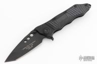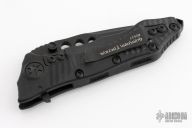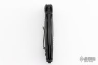 This Helix Nano flipper features a black tanto blade, dual thumbstuds, flipper, and notched thumbrest. The handle has a black G-10 frame, black aluminum backspacer and stainless tip up clip. Nice detent, lockup and blade seating. #0537 on clip and dated 03/2017. Includes original box and papers. Knife is in excellent condition.