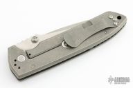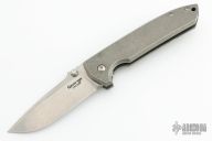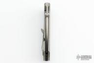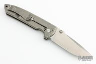 This Project VECP by Les George features a tumble finish CNC flat ground blade and a bead blasted titanium frame with matching tip up clip. Hinderer lock bar stabilizer. Phosphorus bronze washers. Smooth action. Nice blade seating, detent and lockup. Excellent condition.