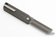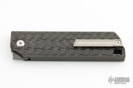 The MaximX (SpaceXi) Flipper version 1 is the LARGE brother of the SpaceX. The MaximX is the second version of the SpaceX that runs on bearings that allows it to almost fly open. Its complexity is in its simplicity. It is sleek and simple, but with a complex 6 face grind with fullers. It is a modern take on your grandfather’s pocketknife. It is a pleasure to hold and use. The Blade is M390 high grade knife steel and the handles are carbon fiber titanium. Excellent condition.
