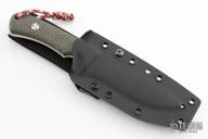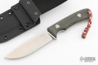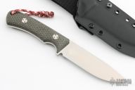 This SouthPole fixed blade from TRC Knives has a satin finished drop point blade with notched thumbrest, .175" blade stock, 1.207" depth. Handle is comprised of checkered black canvas micarta with lanyard hole over full tang construction. Includes kydex sheath with belt loop, original box and papers. Excellent condition.