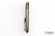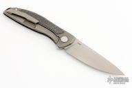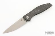 This HatiOn Zero by Shirogorov Knives features a tumble finished drop point blade with flipper. The handle is comprised of a milled black/white Carbon Fiber "A" side and a tumbled titanium lockside with carbon fiber inlay, a titanium backspacer with recessed lanyard bail. 3D Machined titanium pocket clip is positioned for right hand, tip up carry. Comes with original box and papers. Rides on MRBS. Excellent condition.