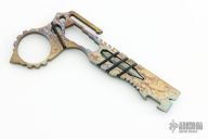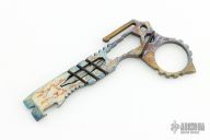 The Mini Ti-Pry is multi-purpose pocket tool from Thompson Knife and Tool is made entirely of 3/8" titanium. This piece features a pry tip with nail puller, a nearly sharpened bottom edge, Also incorporated into the piece is a bottle opener, integral pocket clip, multiple hex bit openings, #2 Phillips 8-10 flat head double ended bit (secured by o-rings), and slotted cut out to fit various sized bolt heads. New from maker with COA.