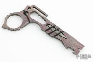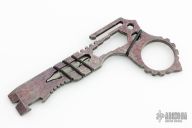 The Mini Ti-Pry is multi-purpose pocket tool from Thompson Knife and Tool is made entirely of 3/8" titanium. This piece features a pry tip with nail puller, a nearly sharpened bottom edge, Also incorporated into the piece is a bottle opener, integral pocket clip, multiple hex bit openings, #2 Phillips 8-10 flat head double ended bit (secured by o-rings), and slotted cut out to fit various sized bolt heads. New from maker with COA.