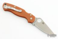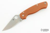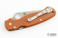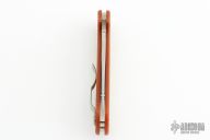 This Paramilitary 2 compression lock folder has a satin finished 15V stainless steel clip point blade with thumb hole and notched thumb rest. Handle has Custom Cerebus Butterscotch Paper Micarta Scales, comes with original brown G-10 scales, stainless steel liners and stainless steel 4-way reversible clip. Comes with original box and papers. Excellent condition.