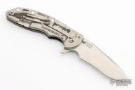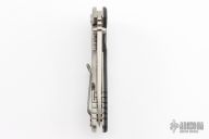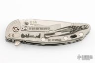 This XM-18 Tri-way Flipper by Rick Hinderer Knives features a 3.5" stonewash finished blade, notched thumbrest and flipper, dual thumbstuds. The handle has a black G-10 scale, and stonewashed titanium handle/clip. Clip can be mounted for tip up or down carry. Nice lockup, seating, and detent. Comes with original box, papers and extra hardware. Excellent condition.