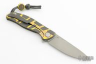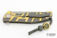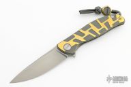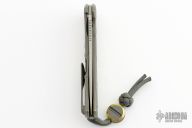 This F95T by Shirogorov Knives features a stonewashed blade with a notched thumbrest and flipper. The handle has a two-tone milled titanium frame with matching titanium backspacer and tip up clip. Nice detent, lockup and blade seating. Has MRBS. Comes with original box and COA. Light scratches are visible on the frame otherwise the knife is in Excellent condition.