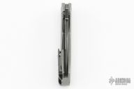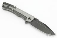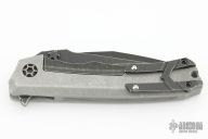 This Wraith by Heretic Knives features a black blizzard-worn blade, notched thumbrest and flipper. The handle has a battle-worn aluminum frame with black battle-worn stainless steel lockbar and tip up clip with ball bearing insets. Distressed finish, excellent condition.