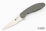 This Mantra2 Pln by Spyderco features a satin finished blade with thumbhole, and flipper. The handle has a tumbled titanium frame with paper clip style clip, tip up reversible, stainless lockbar insert, and lanyard hole. Comes with original box and papers. Excellent condition.