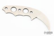 This Custom Hook Knife AKA The Crab by Ernie Emerson features a satin finished chisel ground blade with .139" blade stock and .838" blade depth, full tang construction. The handle is skeletonized for a lighter overall weight. Excellent condition. We believe this is one of two. Comes with original box.