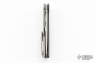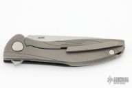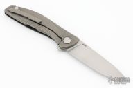 This HatiOn Lite by Shirogorov Knives features a tumble finished drop point blade with flipper. The handle has a Carbon Fiber "A" side and a tumbled titanium lockside over a titanium backspacer with recessed lanyard bail. 3D Machined titanium pocket clip is positioned for right hand, tip up carry. Comes with original box and papers. Excellent condition.