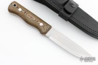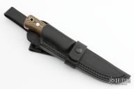 "These knives were formally known as the original "TRACKER" knives from the registered trademark, which I was the first to own & stamp on my blades during the '90's. After a brief retirement & the release of the 2003 Paramount Pictures film "The HUNTED" in which my Model "C" TRACKER knives were used & displayed, I resumed making my original TRACKER knife patterns but changed the name to avoid questionable trademark right disputes. In 2003 I was the first to coin the name "WSK" or Wilderness Survival Knife to this design. With over 22 years of refinement from personal service, feedback from customers & extensive field testing & use by top survival instructors & Elite military from around the world, my WSK knives have evolved into perfection & have repeatedly proven themselves in the field from real world survival to combat in many of our country's latest conflicts. Today you will see many variations by other makers but none can match the history, function & performance of my knives which are still the standard by which all others are judged. All the WSK knives I offer continue to be individually hand-crafted by myself from the contouring of the blades to the hand cut saw teeth to ensure the highest degree of craftsmanship & performance. Each blade is crafted from high carbon tool steel & skillfully deferentially hardened & tempered for superior edge holding & blade resilience. Handle grips are permanently fastened by stainless steel Loveless bolts with solid brass nuts, lined lanyard hole and guaranteed never to loosen under the hardest use. My sheaths are personally crafted for a custom fit from heavy leather that's been double stitched & finished for long wear. My field-grade knives retain all the same quality construction, differential heat treatment & performance as my high grade collectible knives but come with less costly cosmetic refinements for more practical field use."