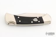 This Buck 112 Auto features a satin finished clip point blade. The handle has a nickel silver frame with black G-10 scales. Comes with original box, papers and sheath. Has a few scratches, otherwise excellent condition.