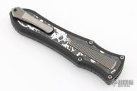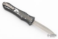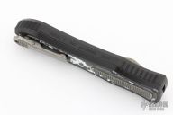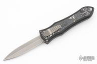 This knife is a Deadlock Model C by Grant and Gavin Hawk. It has a double-edged stonewashed blade. The handle has a fat carbon and black aluminum frame with a tip down spring clip, titanium. The thumb slide on the handle is also titanium and handle has titanium overlays. Grant and Gavin Hawk set out to create a double action OTF with no blade play.... They did it, NO blade play. Comes with cloth pouch, tool and card. Excellent Condition.