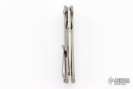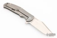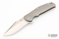 This Intrepid Flipper from Kizer was designed by Ray Laconico. It features a satin finished clip point blade with flipper. The handle is comprised of bead blasted titanium over barrel spacer and matching tip up clip. Includes original box, zippered case and papers. Excellent condition. #175/500
