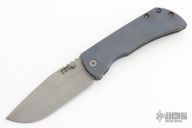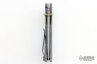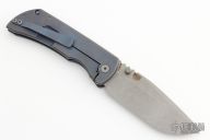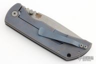This MAC2 features a stonewashed drop point Magnacut blade with dual thumbstuds and a notched thumbrest. The handle features a blue atomic titanium frame with a matching tip up pocket clip. New from Maker!