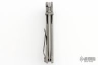 This MAC2 features a stonewashed drop point Magnacut blade with dual thumbstuds and a notched thumbrest. The handle features a matte atomic titanium frame with a matching tip up pocket clip. New from Maker!