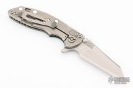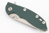 This XM-18 by Rick Hinderer features a tumble finished wharncliffe blade with notched thumbrest and flipper. The handle has a textured G-10 scale, tumbled titanium frame and clip, lanyard hole at the butt. Nice detent, lockup and blade seating. Comes with Hinderer box. Gen 4. Excellent Condition.