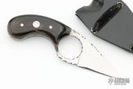 Fred Perrin makes fixed blades and folders of every kind; Forges Damascus steel or uses stock removal techniques. In any case, he always does his own heat treatment and tempering. As far as his background in the martial arts, Fred has spent two years in the French Army Commandos and worked as a bodyguard. He was a national Tae Kwon Do champion and a European full contact stick-fighting champion. He has trained in Kali, and God knows what else. His weapon of choice is the butterfly knife, in which he excels. Aside from being France’s most famous and controversial knife maker and tactical writer, Fred runs a school where he teaches a very unique blend of knife, stick, and empty hand techniques. He is often contracted by France’s elite police units for seminars. He also provides some agencies with custom-made weapons for ballistic testing.