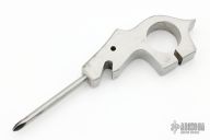 This Rhinoceros by Seth Ofgang is made from satin finished stainless steel. It has a Phillips head screw driver, bottle opener, flathead screwdriver, and it hooks to a belt loop. 1" finger hole. New from maker. #2 of 5.