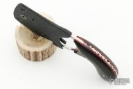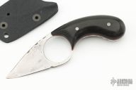 This custom version of Fred Perrin's popular La Griffe features a chisel ground blade with visible temper line, fileworked spine and black wood scales with red liners, full tang construction, .119" blade thickness and 1.224" blade depth. Nice fit in the hand. Includes kydex sheath. Has some light scratches, otherwise excellent condition.