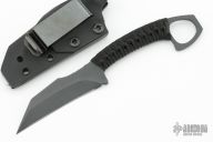 SHPOS "Sub Human Piece Of Shit" elite cerakote finish, rock work spine, 7.75" overall, 3" blade, .12" thickness, s35vn American steel, rc60. Includes suede lined black kydex sheath with metal belt clip, belt clip can be positioned for either side of sheath. Blade designed by Special Operators for easy carry and easy access in plate carrier or in low vis situations, for pushing or stab and slash movements. Excellent condition.