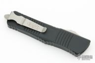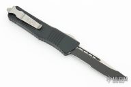 This Combat Troodon OTF automatic features a black S/E blade with a partially serrated edge. Black stainless steel clip, tip down carry and hardware. Glass breaker. Serial number 23259 and dated 07/2019. Comes with original box and papers. Excellent Condition.