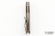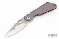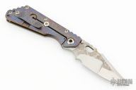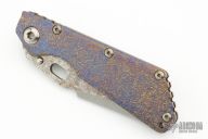 This SMF by Mick Strider features a nightmare ground blade with a notched thumbrest and thumbhole and magma textured flats. The handle has an magma textured titanium frame with matching tip up clip. Comes with zippered case. Excellent condition.