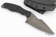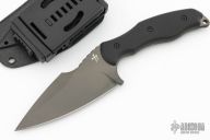This SB1 by Fox Cutlery is a Borka Blades design, it features a black blade with false top edge and notched thumbrest, .199" blade stock and 1.545" blade depth, full tang construction with black g10 scales. Comes with kydex sheath with belt clip and original box. Has some light sheath marks, otherwise excellent condition.