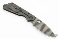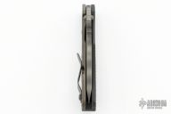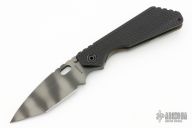 This MSC SMF framelock folder by Mick Strider features a tiger striped tanto blade and a dimple pattern black aluminum and flamed titanium frame and tip up titanium clip. Includes Hinderer "Lock Bar Stabilizer" for maximum reverse lock retention. Nice detent, lockup and blade seating. Excellent condition.