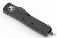 This UTX-85 OTF automatic by Microtech knives features a T/E black partially serrated blade and a black aluminum handle with black hardware, tip down carry. Glass breaker. S/N 73989 Dated 11/2021. Comes with original box and papers. Has scratches on the blade and some scuffs on the clip. Great condition otherwise.