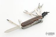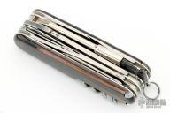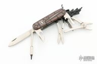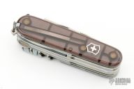 An incredible offering from Victorinox, the Original Swiss Army Company. Fit for the modern "Cyber" Age we live in, this 3-1/2" Knife has several unique features as well as the most useful of standard options. First, the handle has a translucent quality found in no other offering. The "bit receptacle" is also unique and folds out to receive the included single sided "torx" screw fitting or any of the other three double sided bits (giving 6 more ends) which come in the fold out holder. The 6 other ends include 2 torx screws , a straight screw driver and 3 different Phillips head fittings. Also on board are a large and small blade, scissors, Pliers with Wire Cutter, Can Opener with Small Screwdriver, Combination Tool (Bottle Opener, Can Opener, Screwdriver & Wire Stripper), corkscrew, mini screw driver, Ball Point Pen, Toothpick, Tweezers and a Reamer with Sewing Eye