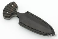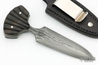 This Push Dagger by Paul Cooper features a Damascus double-edged hand forged blade with .272" blade stock and 1.139" blade depth, full tapered tang construction. The handle has African Blackwood scales that have been scalloped. Comes with a black leather sheath. New from maker.  THIS IS A VERY COOL LITTLE DAGGER!