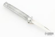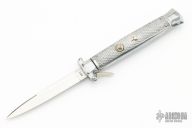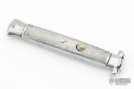 This 1960s Trap Door OTF Auto by Brevettato features a mirror polished blade and a aluminum handle. Has trap door to cover blade opening. Has safety. Has some scratches, otherwise good condition for its age.