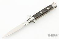 This 9" Picklock by Frank Beltrame features a polished flat ground 4mm blade. The handle has polished nickel silver bolsters, front and rear, buffalo horn scales, brass liners and stainless steel spring. Excellent condition.