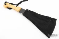 This Woodman's Pal features a black blade with hook blade on the spine, .130" blade stock and 5.25" blade depth at the tip, full tang construction with ash wood handle. Coems with black nylon sheath. Excellent condition.