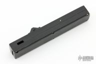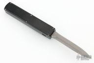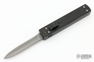 This knife features a gun blued dagger style blade. The handle has a black aluminum chaise. Light scratches are visible otherwise the knife is in good condition. Soligen Germany