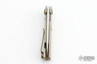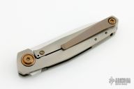 The Isola from Jens Anso features a hand rub satin finished blade with notched flipper. The handle has a milled titanium frame with crosscut natural canvas micarta inlay, titanium pivot collars, anodized titanium screws, anodized titanium backspacer with lanyard hole and clip positioned for tip up carry.  Comes with original box and COA. Rides on bearings, nice detent, lockup and blade seating. New from maker!