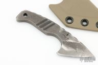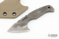 This  Kiridashi by Miller Bros Blades features a notched thumbrest with double ground edge, .253" blade stock and 194" blade depth, full tang construction, lanyard hole at the butt. Comes with kydex sheath. Has some scuffs/scratches, otherwise good condition.
