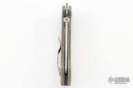 This PoBoy CQC-13 from Emerson Knives features a blackstonewashed blade with knurled titanium thumbdisc and wave feature. The handle has bead blasted and dovetailed titanium bolsters, green canvas micarta scales, titanium liners and a tip up stainless steel clip. Comes with original box and papers. Has a couple light scuffs, otherwise excellent condition.