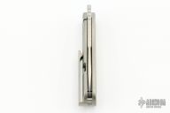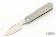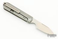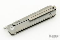 Inspired by the classic #18 scalpel blade, #18 is small frame lock designed for excellent handling, even for larger hands. The scales are curved for comfort and the knurled surface provides just enough grip. Handle is made of Grade 5 Titanium and M390 steel is used for the blade. Includes a tip up pocket clip. Ceramic ball bearings are installed in the pivot and brass inlays are added to the handle for decoration. Includes COA and felt pouch. Excellent Condition.