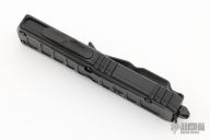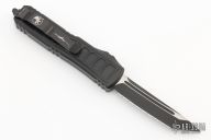 The Microtech UTX-85 OTF knife is the perfect combination of compact size and big performance. At 85% the size of the Ultratech, the Microtech UTX-85 is manufactured with the same materials, on the same machines, and with the same ingenuity as its predecessor. The Microtech UTX-85 is the perfect knife for all situations--no matter what your cutting task; it will mesh seamlessly with your lifestyle. This UTX-85 II has improved handle texturing for a more positive purchase. With its quick one-handed open and close action, it gets the job done in seconds. Equipped with an ambidextrous pocket clip and compact size, this is the perfect choice for everyday use and carry.