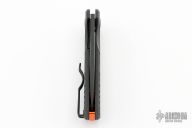 The black FRN handles sport a geometric pattern and provides traction, while a black backspacer adds contrasting texture. A deep-carry wire clip can be set up for right or left-handed carry and keeps the knife in your pocket in a tip-up configuration for ready deployment.