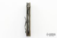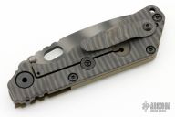 This MSC SNG framelock folder by Mick Strider features a tiger stripe blade and a Crosshatch Ranger Green G-10 and flamed titanium frame and tip up titanium clip. Includes Hinderer "Lock Bar Stabilizer" for maximum reverse lock retention. Nice detent, lockup and blade seating. New condition.